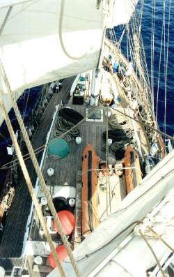 The Yards are aloft lifting great sheets of sail. Look to the top of the mast and spy a little creature keeping look out - and realise that is the leader of your watch. Ahrgg - adrenalin - just keep it steady now!